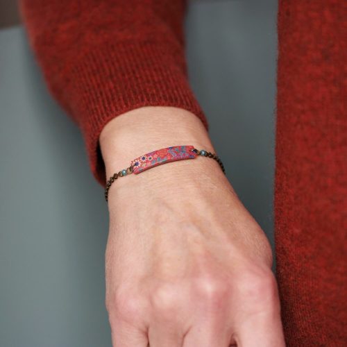 Bracelet gourmette au motif floral rouge sur chaîne en laiton, collection Hanami