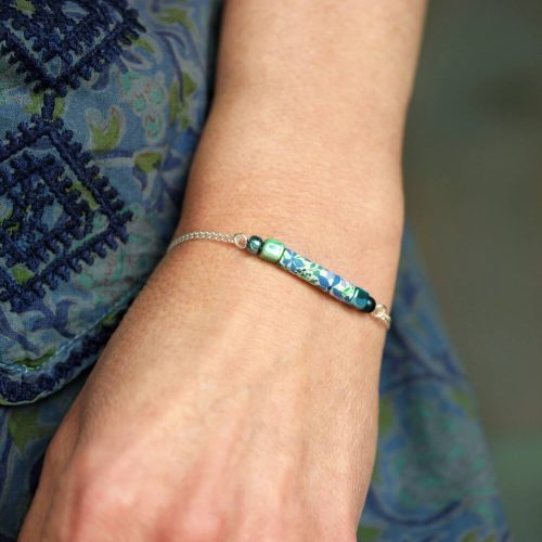 Bracelet en argent 925 et perles à motifs ikat turquoise, collection Santoline